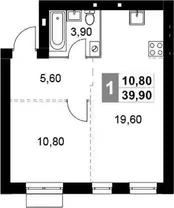 5 754 367 ₽1-к.квартира, 38.7 м², 5 эт.