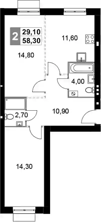 8 333 699 ₽2-к.квартира, 58.3 м², 2 эт.