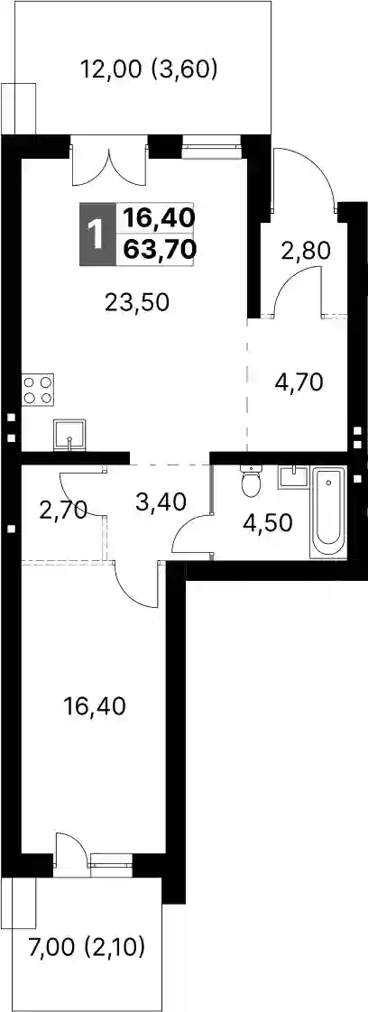 13 003 719 ₽2-к.квартира, 63.3 м², 4 эт.