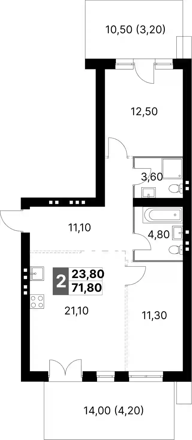 2-к.квартира, 64.4 м², 1 эт. в ЖК Апрелевка Клаб Корпус 3