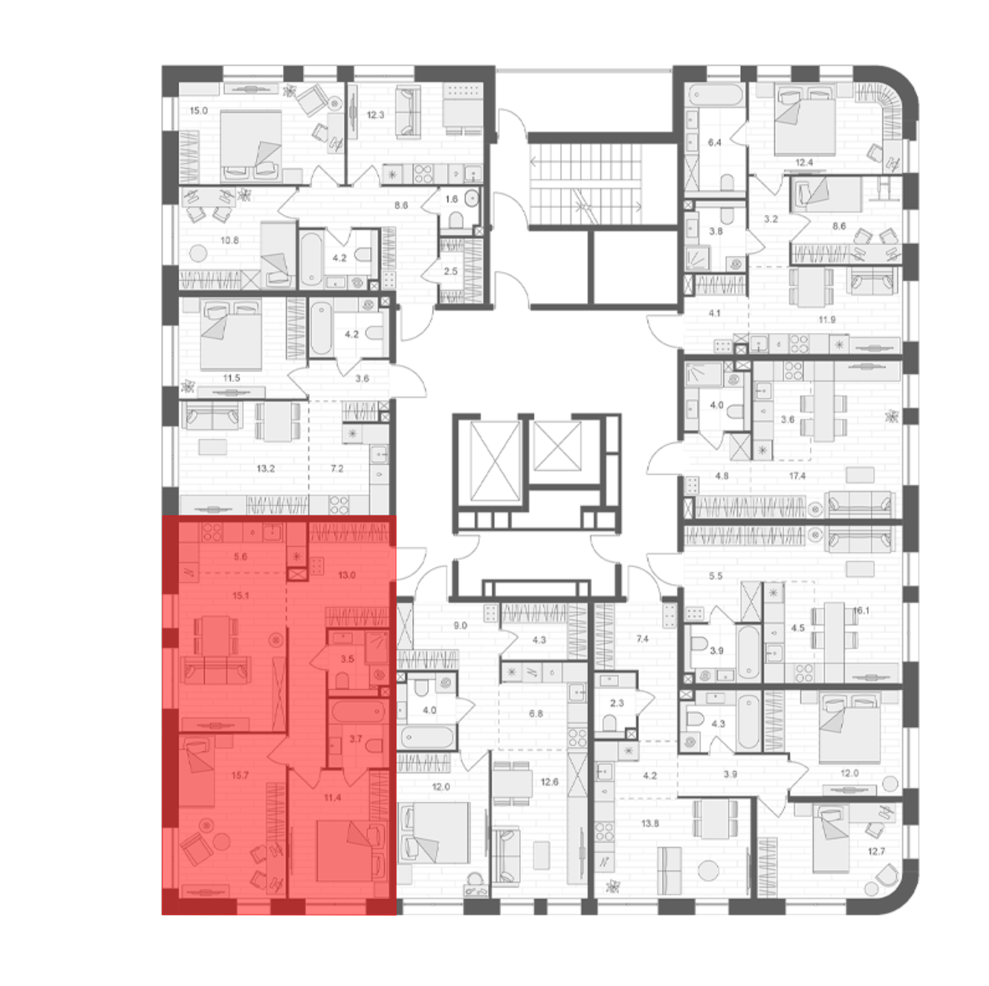 В проекте представлен широкий выбор планировочных решений: от студий до 4-комнатных евро-формата. В каждом доме всего по 82 квартиры. Есть квартиры с собственными террасами и лоджиями. А из квартир второго этажа есть прямой выход на открытую общественную террасу. Площадь квартир варьируется от 24,9 до 90 кв. метров. Высота потолков — до 3,7 метра. Квартиры в одном из корпусов сдаются c дизайнерской отделкой из материалов премиального качества и сантехникой. Во втором корпусе квартиры будут доступны в черновой отделке.