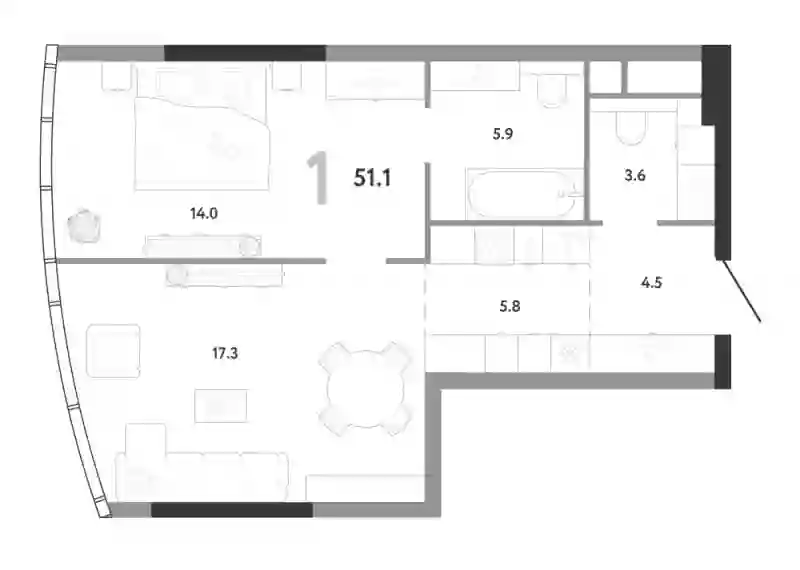 50 870 000 ₽Студия, 41.1 м², 55 эт.