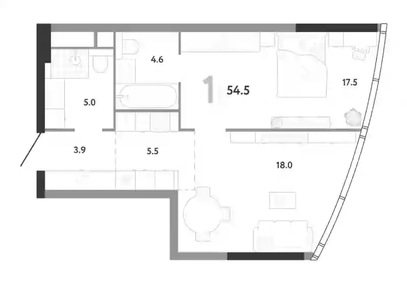 62 590 000 ₽2-к.квартира, 54.5 м², 50 эт.