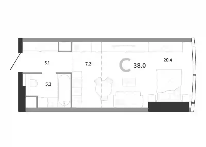 50 334 720 ₽Студия, 34.8 м², 45 эт.