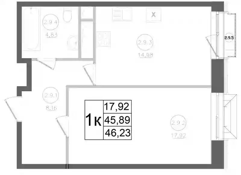 9 427 774 ₽1-к.квартира, 45.89 м², 15 эт.