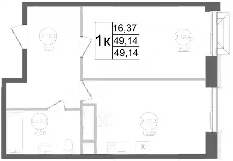 1-к.квартира, 49.14 м², 2 эт. в ЖК Авиатор-2 Корпус 1