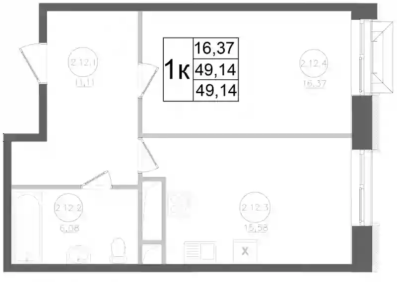 9 570 438 ₽1-к.квартира, 49.04 м², 5 эт.