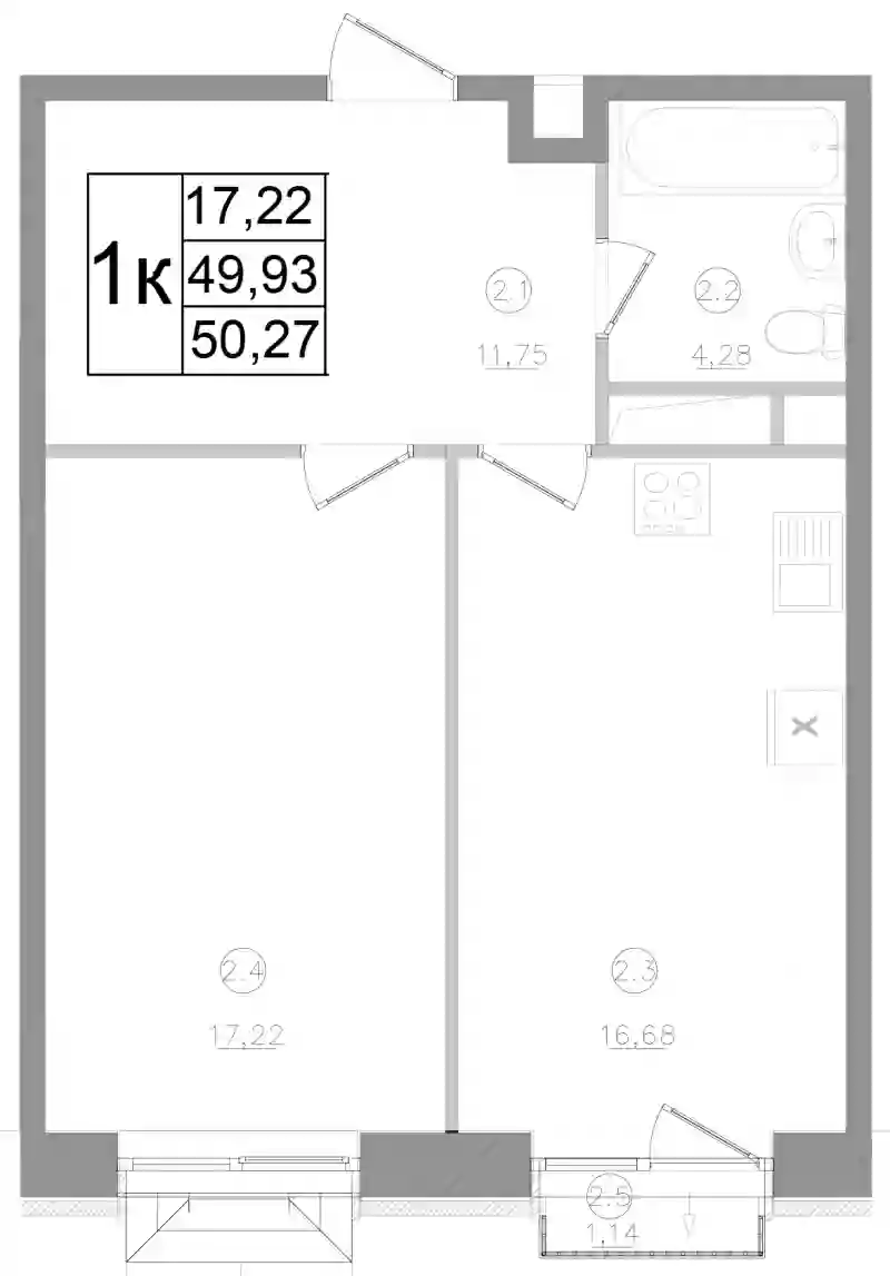 9 639 775 ₽1-к.квартира, 49.93 м², 2 эт.