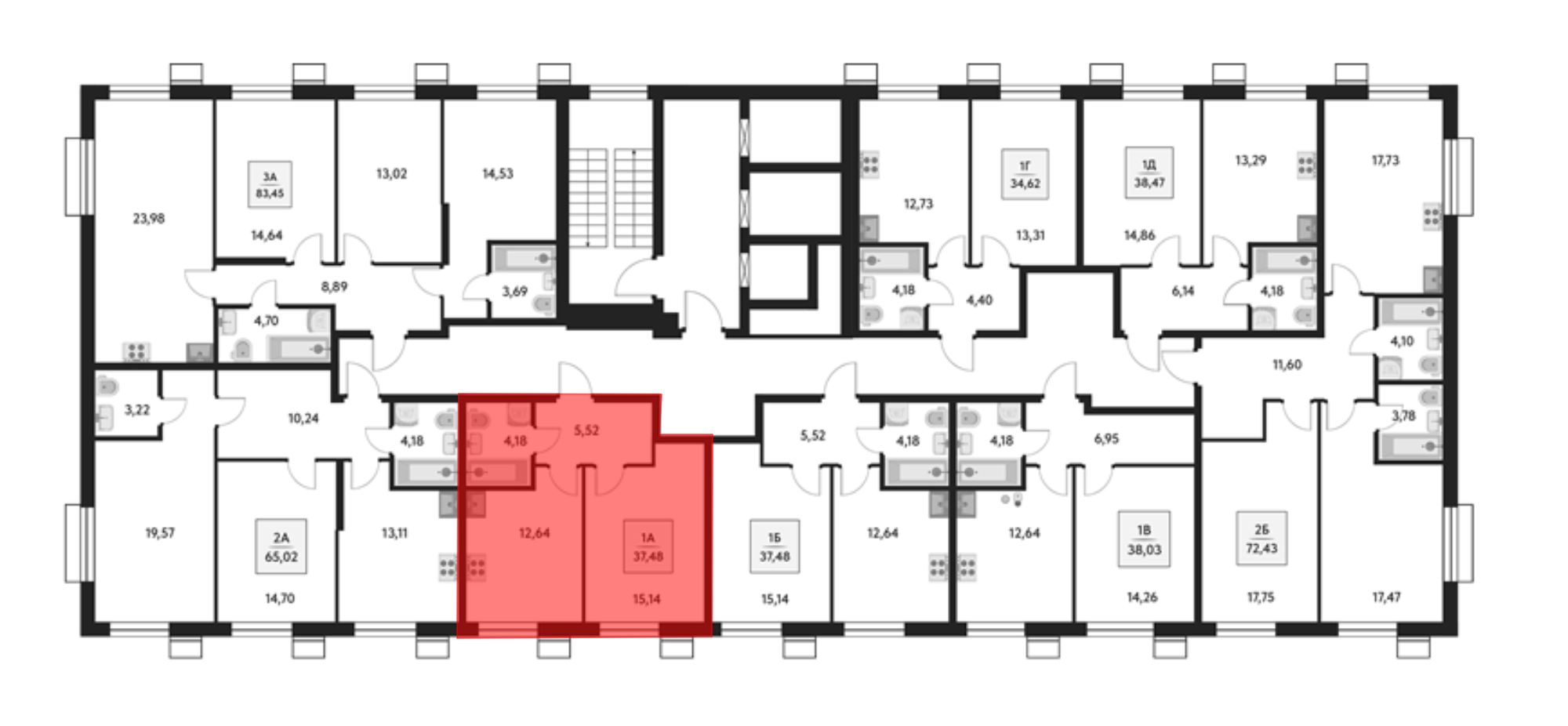 1-к.квартира, 37.48 м², 2 эт. в ЖК Бархат Корпус 1