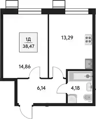 10 421 124 ₽1-к.квартира, 38.28 м², 2 эт.