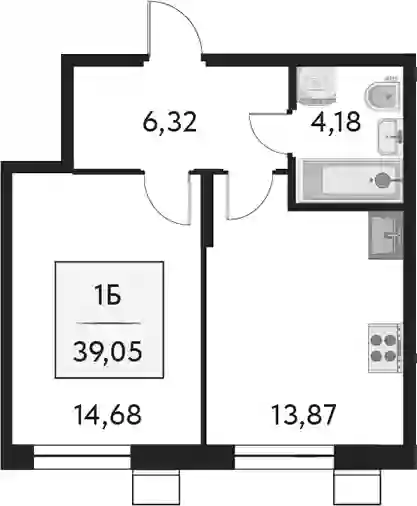 9 530 000 ₽1-к.квартира, 39.29 м², 4 эт.