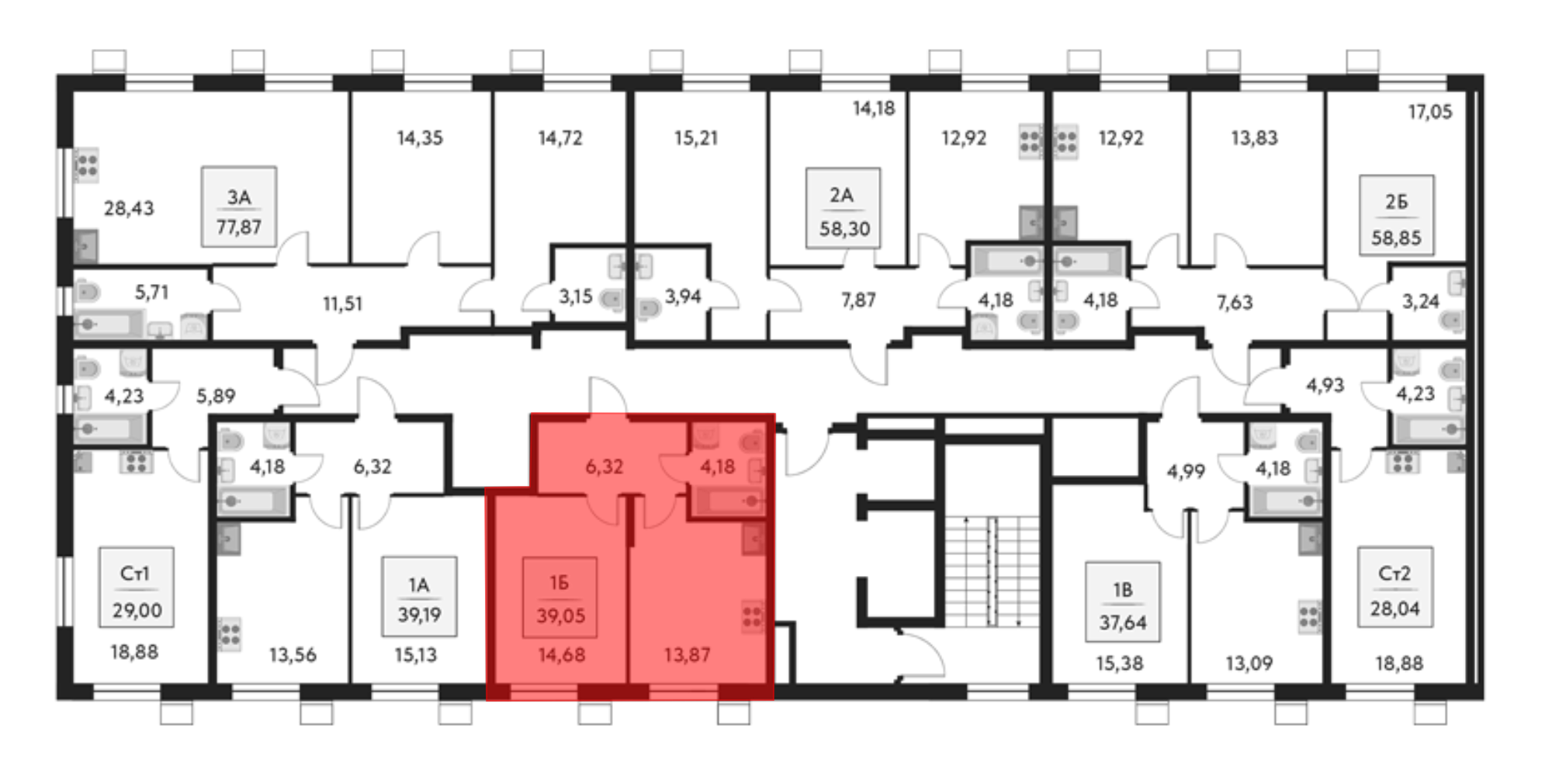 39.05 м2