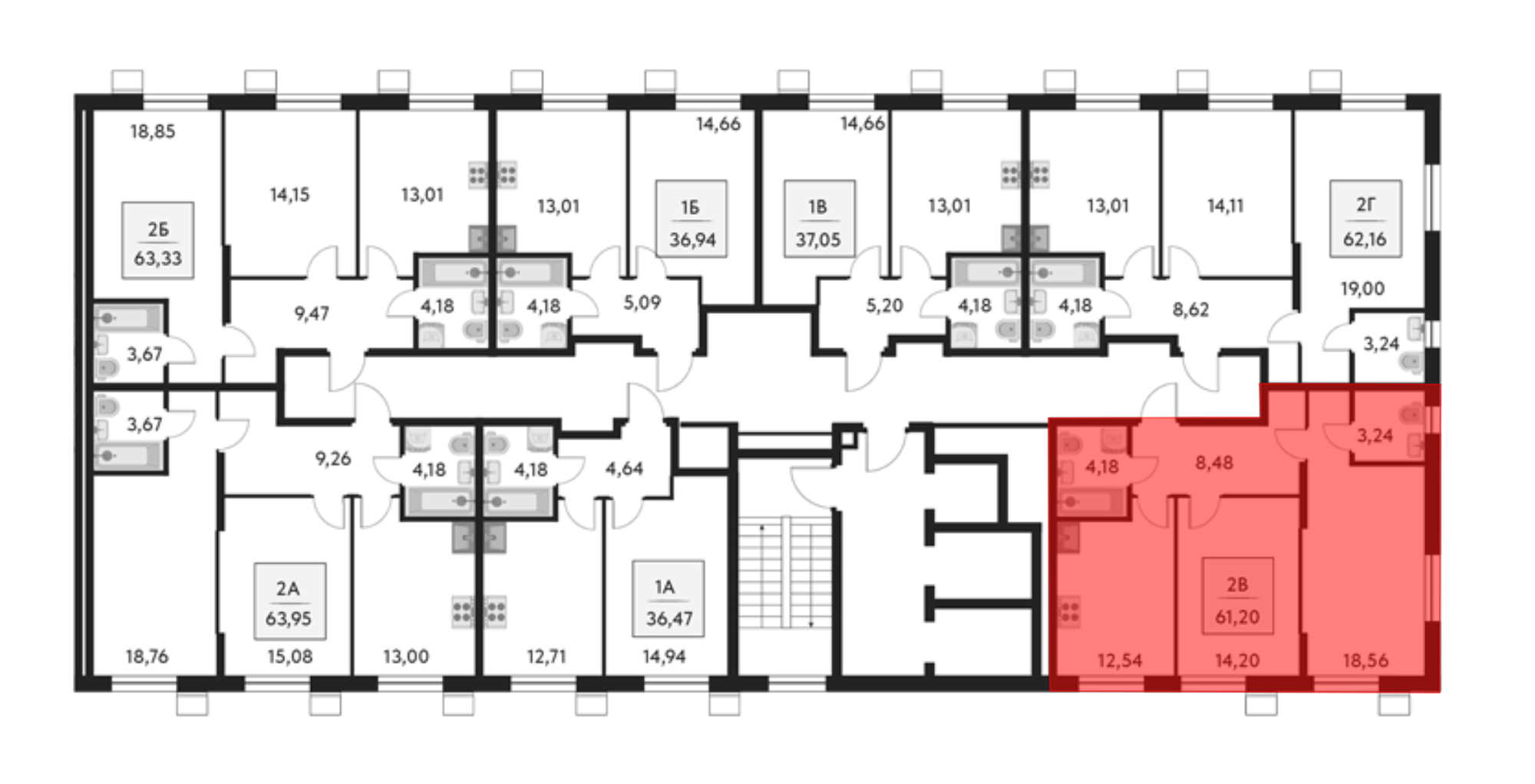 В комплексе представлены студии, одно-, двух- и трехкомнатные квартиры с просторными планировками. Площадь варьируется от 28 до 91 кв. метров. Квартиры сдаются без отделки, с высокими потолками и панорамными окнами.