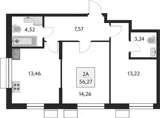 17 246 000 ₽2-к.квартира, 57.32 м², 4 эт.