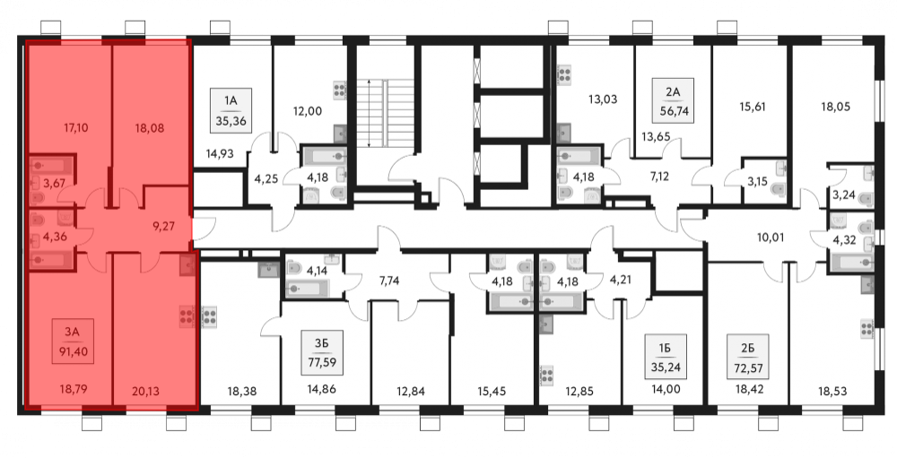 В комплексе представлены студии, одно-, двух- и трехкомнатные квартиры с просторными планировками. Площадь варьируется от 28 до 91 кв. метров. Квартиры сдаются без отделки, с высокими потолками и панорамными окнами.