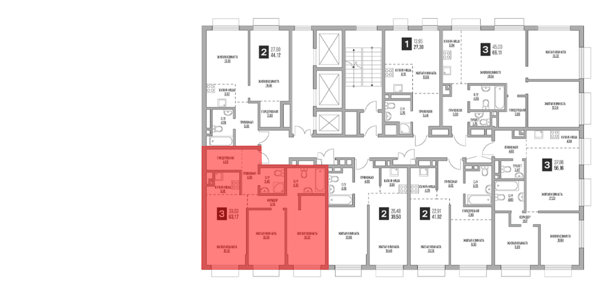 3-к.квартира, 63.17 м², 24 эт. в ЖК BeLuck Коломенское Корпус 1.1