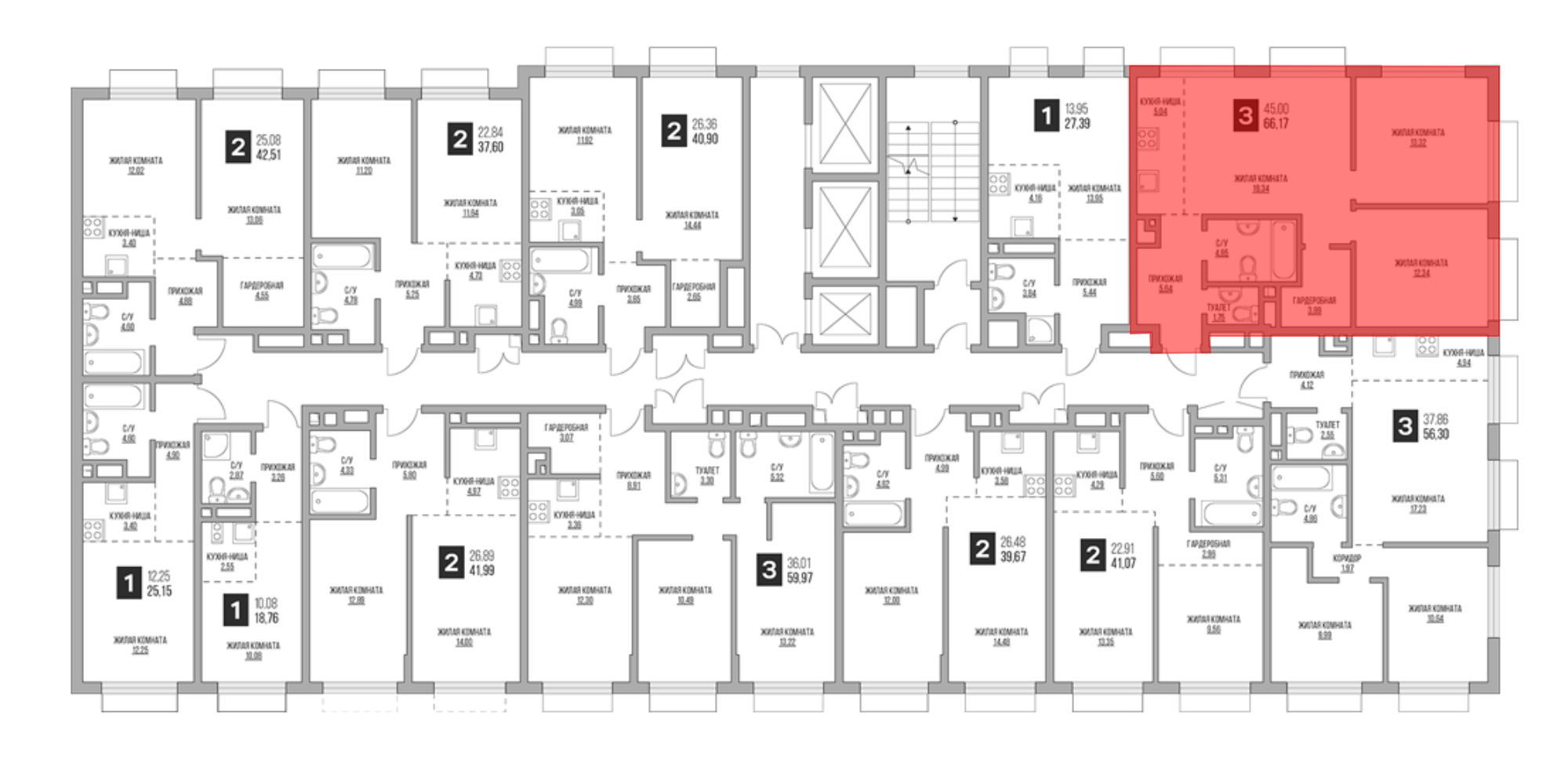 3-к.квартира, 66.17 м², 18 эт. в ЖК BeLuck Коломенское Корпус 1.1