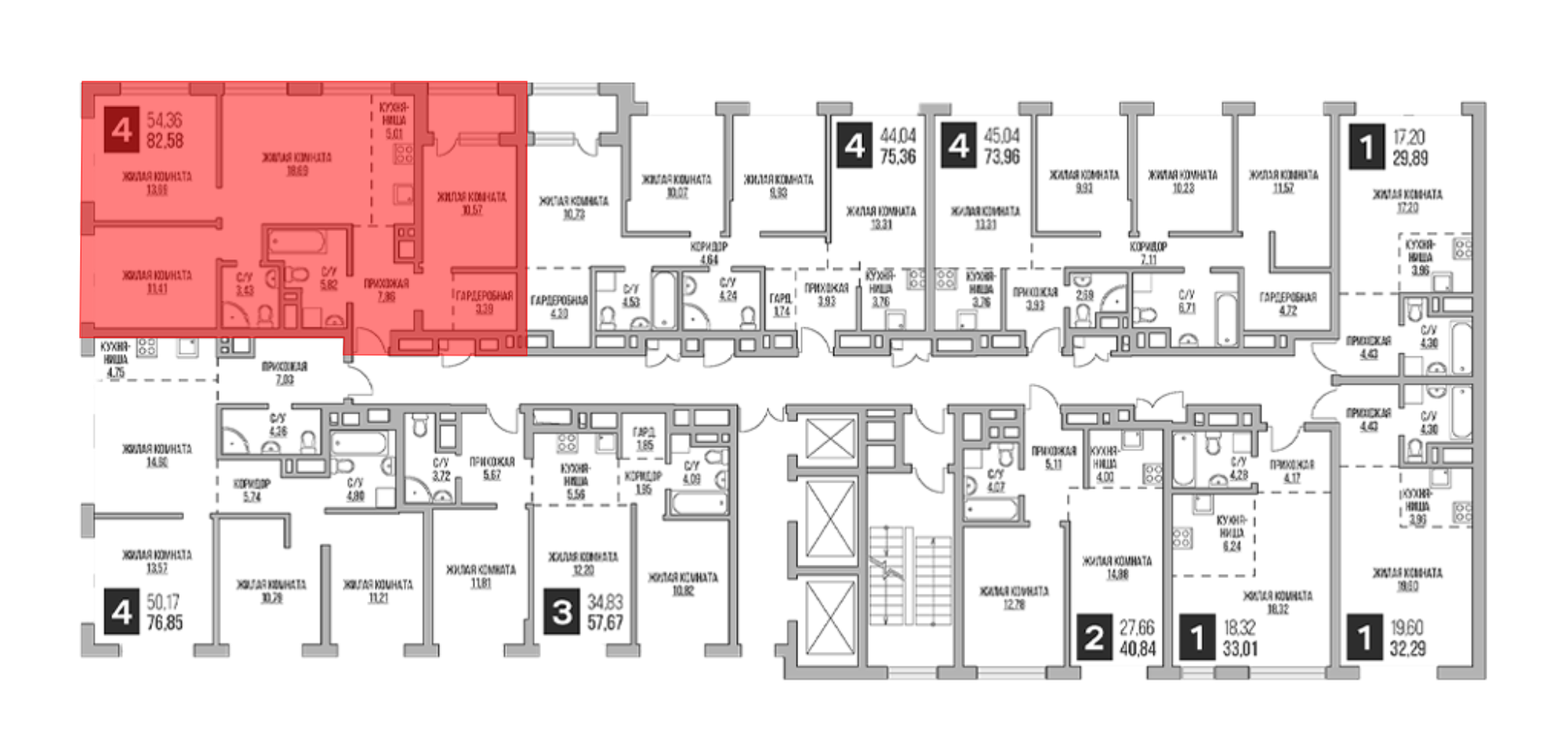 4-к.квартира, 79.87 м², 28 эт. в ЖК BeLuck Коломенское Корпус 1.1 секции 4, 5