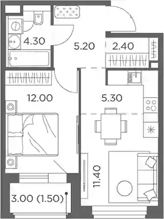 7 750 000 ₽2-к.квартира, 40.3 м², 3 эт.