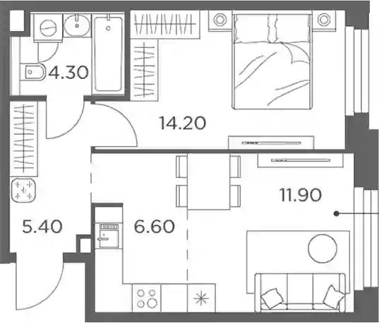 6 380 000 ₽2-к.квартира, 39.6 м², 14 эт.