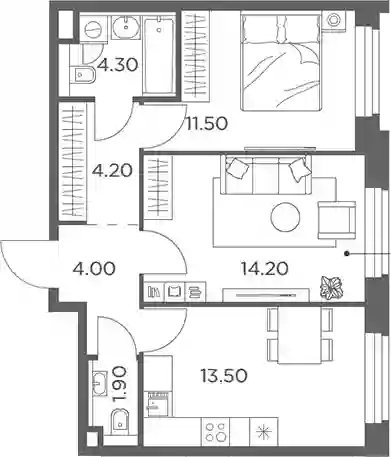 В проекте представлено множество планировочных решений — от студий до просторных 4х-комнатных квартир. Все лоты сдаются с базовой отделкой, высотой потолков до 3,16 метров и стандартными окнами. Предусмотрены квартиры с мастер-спальнями и гардеробными.