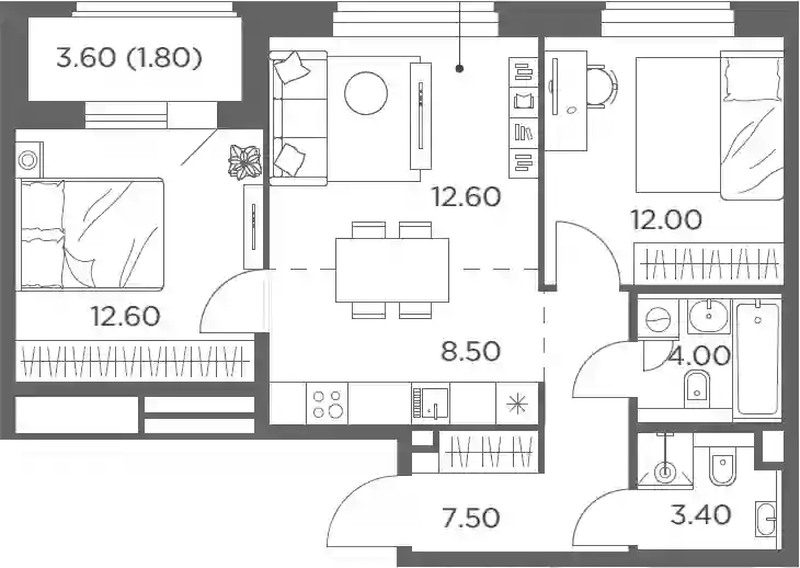 12 180 000 ₽3-к.квартира, 56 м², 18 эт.