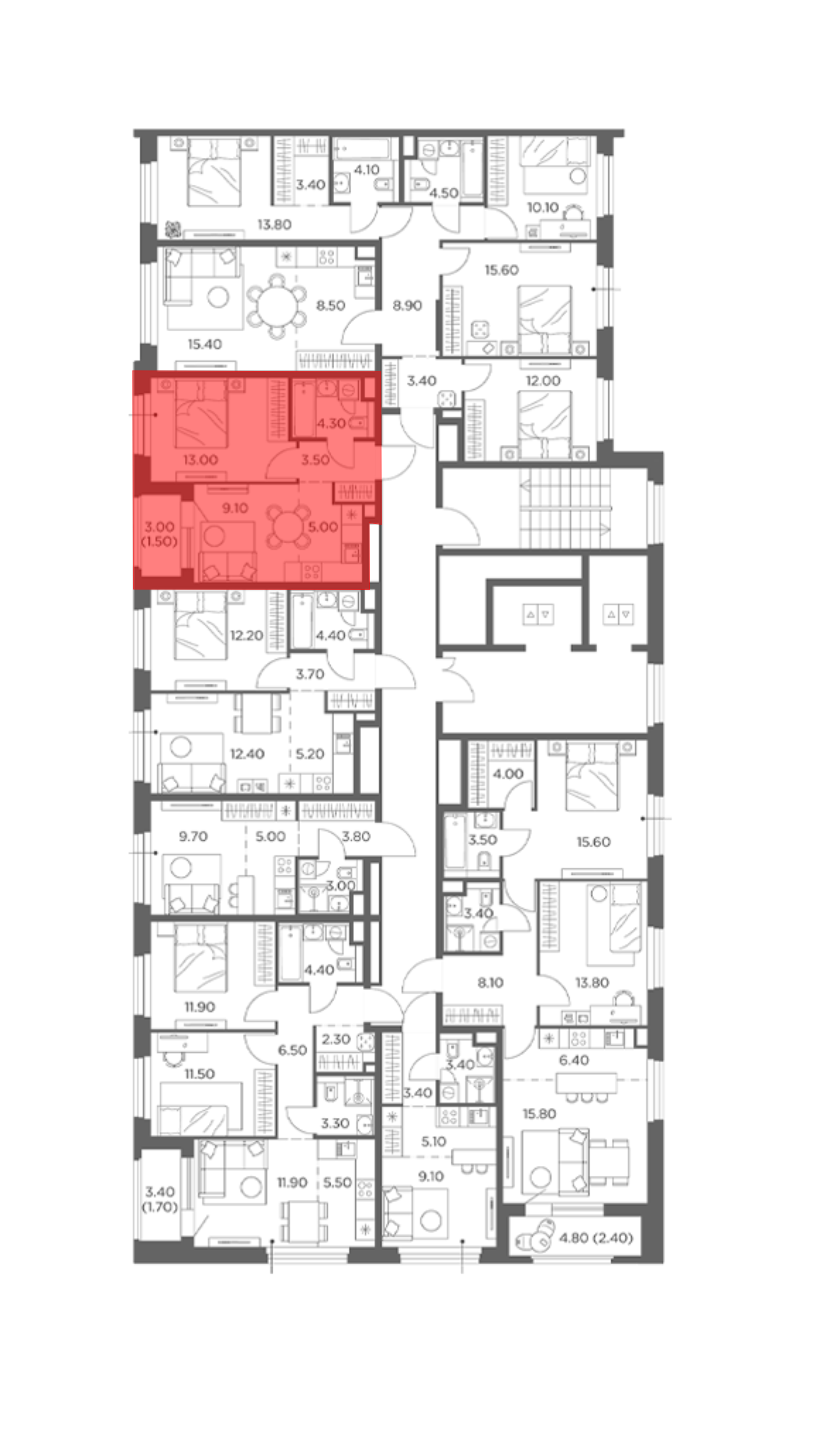 В проекте представлено множество планировочных решений — от студий до просторных 4х-комнатных квартир. Все лоты сдаются с базовой отделкой, высотой потолков до 3,16 метров и стандартными окнами. Предусмотрены квартиры с мастер-спальнями и гардеробными.