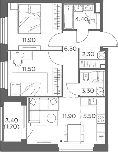 3-к.квартира, 57.3 м², 10 эт. в ЖК Белый мыс Корпус 12.1