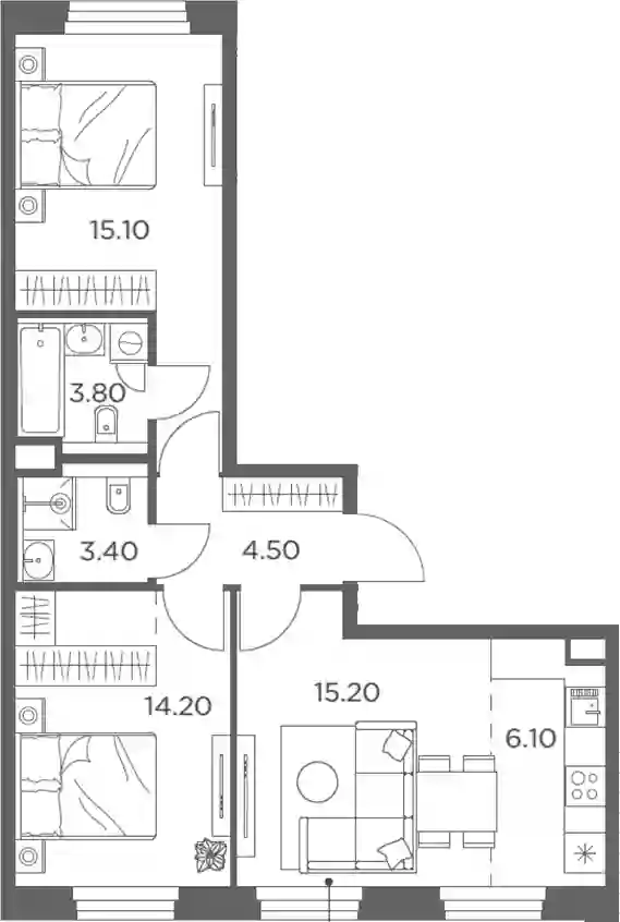 3-к.квартира, 62.3 м², 6 эт. в ЖК Белый мыс Корпус 12.1