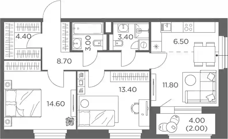14 900 000 ₽3-к.квартира, 65.6 м², 7 эт.