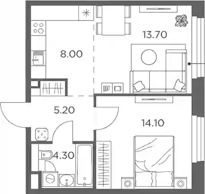 9 380 000 ₽2-к.квартира, 42.8 м², 13 эт.