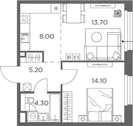 9 330 000 ₽2-к.квартира, 42.4 м², 8 эт.