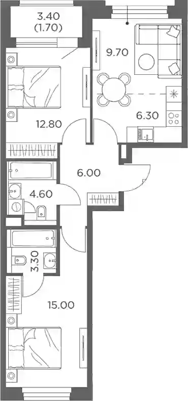 11 794 940 ₽3-к.квартира, 61.4 м², 9 эт.