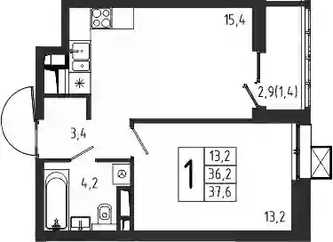 6 391 639 ₽1-к.квартира, 36.2 м², 2 эт.