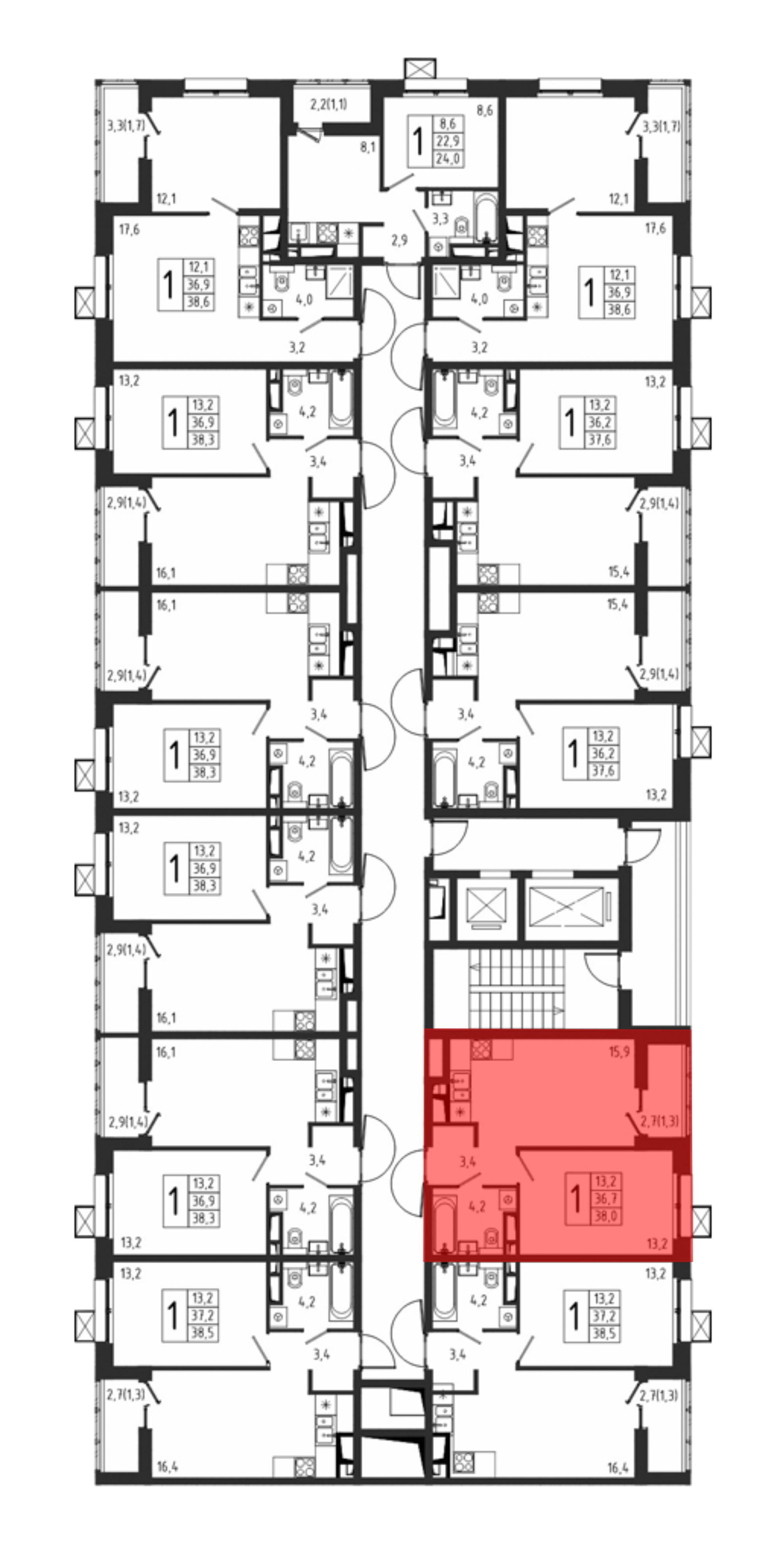 9 611 336 ₽1-к.квартира, 37.2 м², 3 эт.