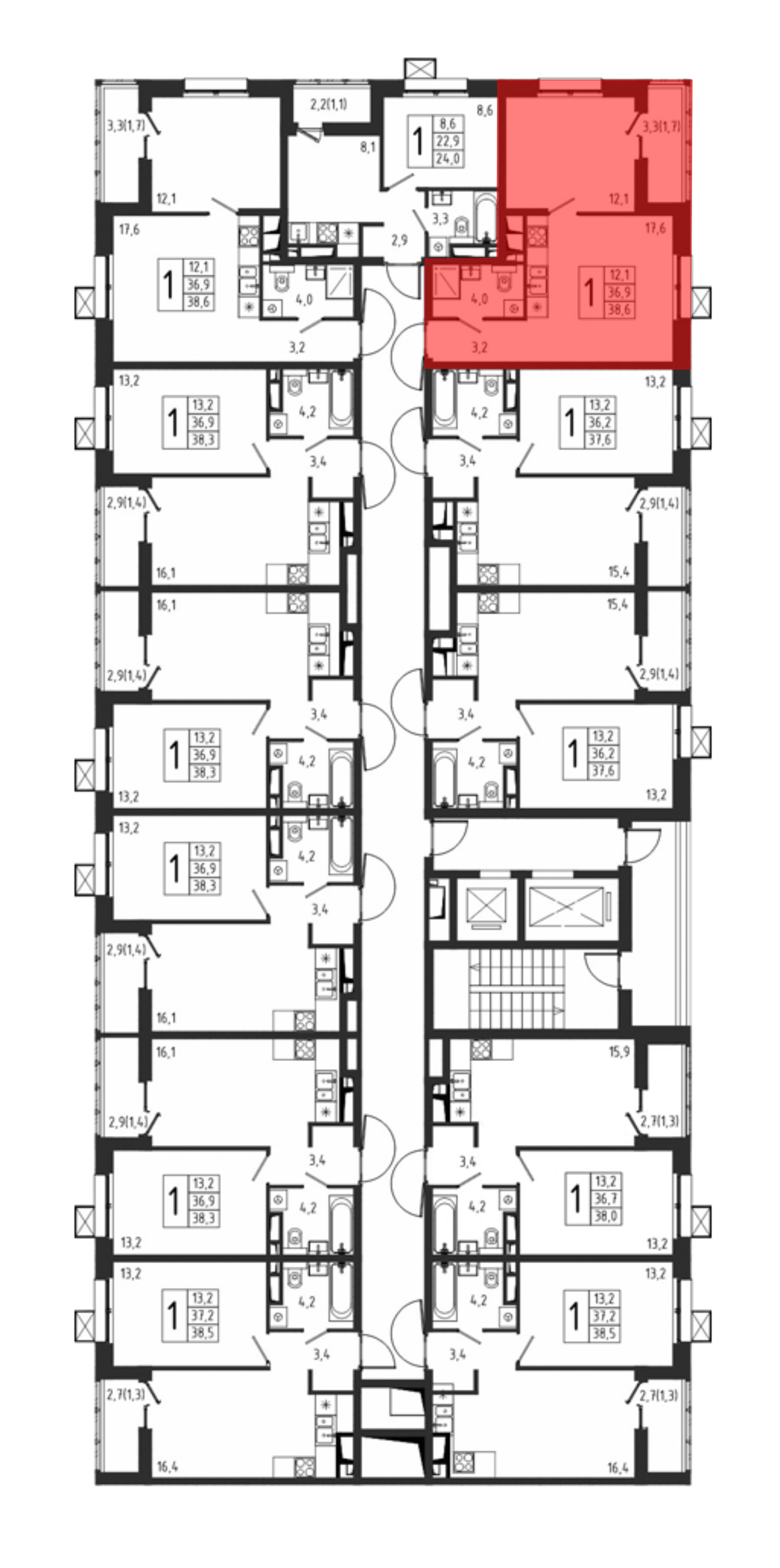 9 636 301 ₽1-к.квартира, 36.9 м², 3 эт.