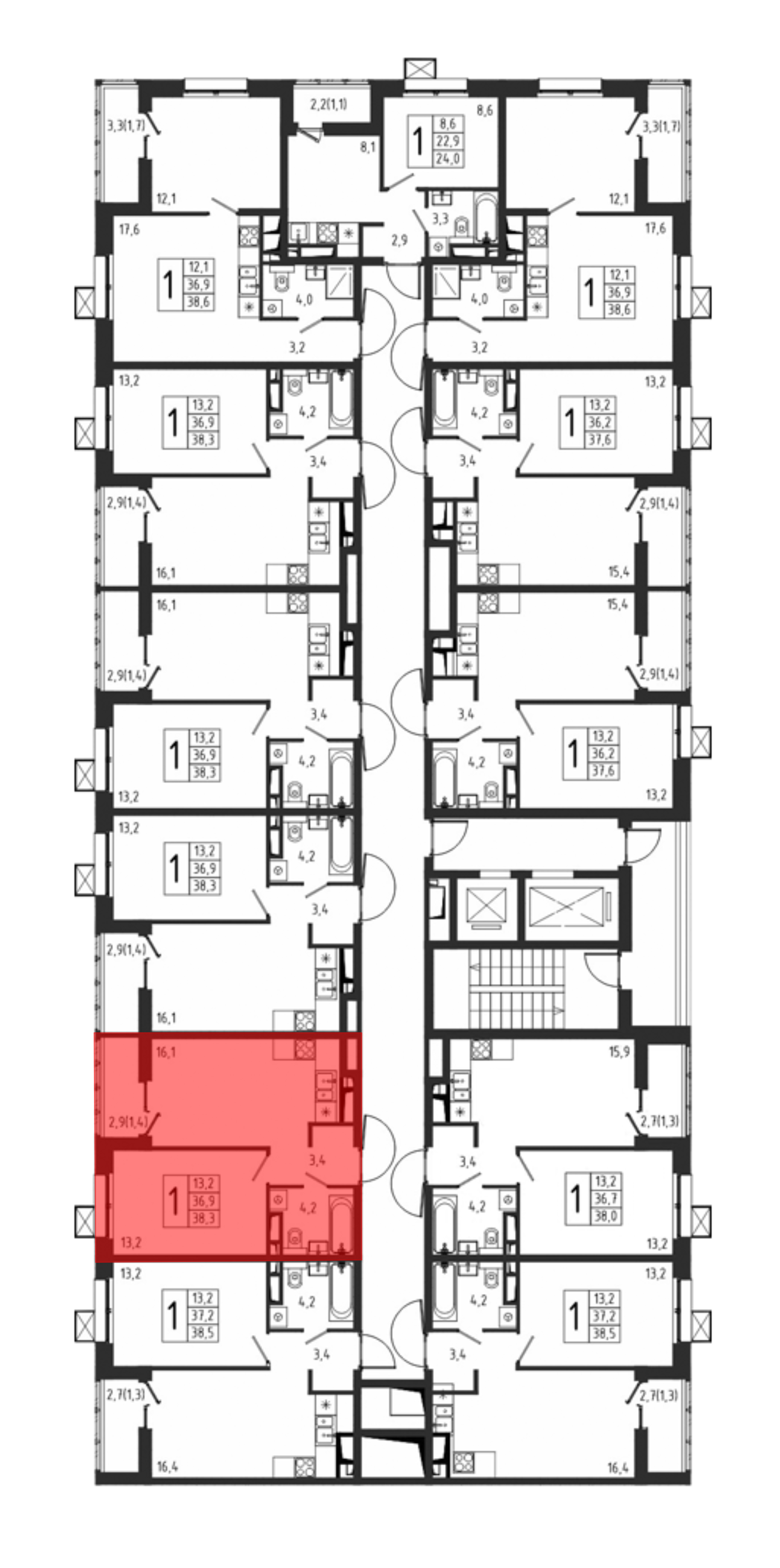9 636 301 ₽1-к.квартира, 36.9 м², 3 эт.