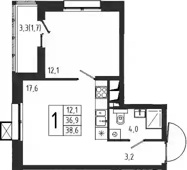 6 213 857 ₽1-к.квартира, 36.9 м², 1 эт.