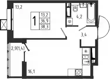 6 213 857 ₽1-к.квартира, 36.9 м², 1 эт.