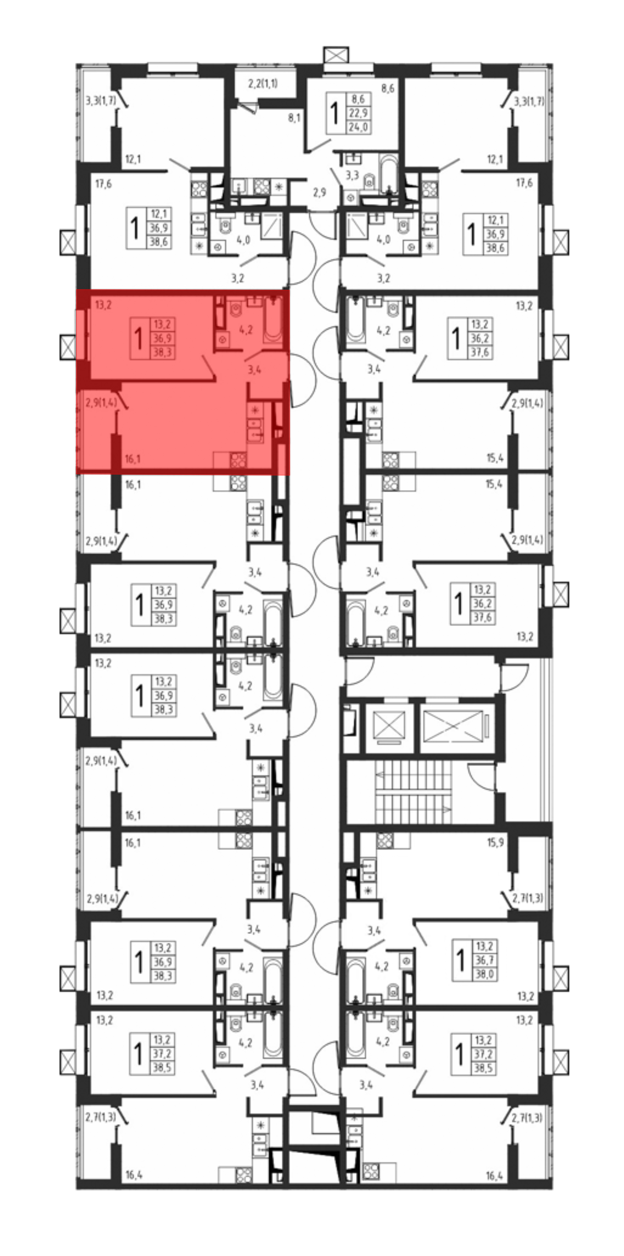 9 459 277 ₽1-к.квартира, 36.9 м², 3 эт.