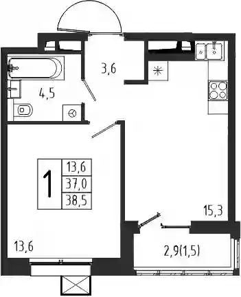 6 213 857 ₽1-к.квартира, 36.9 м², 1 эт.