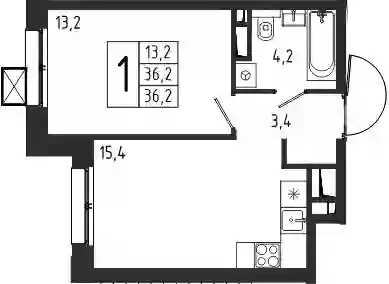 6 545 424 ₽1-к.квартира, 36.7 м², 4 эт.