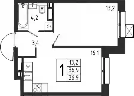 6 539 105 ₽1-к.квартира, 36.9 м², 3 эт.