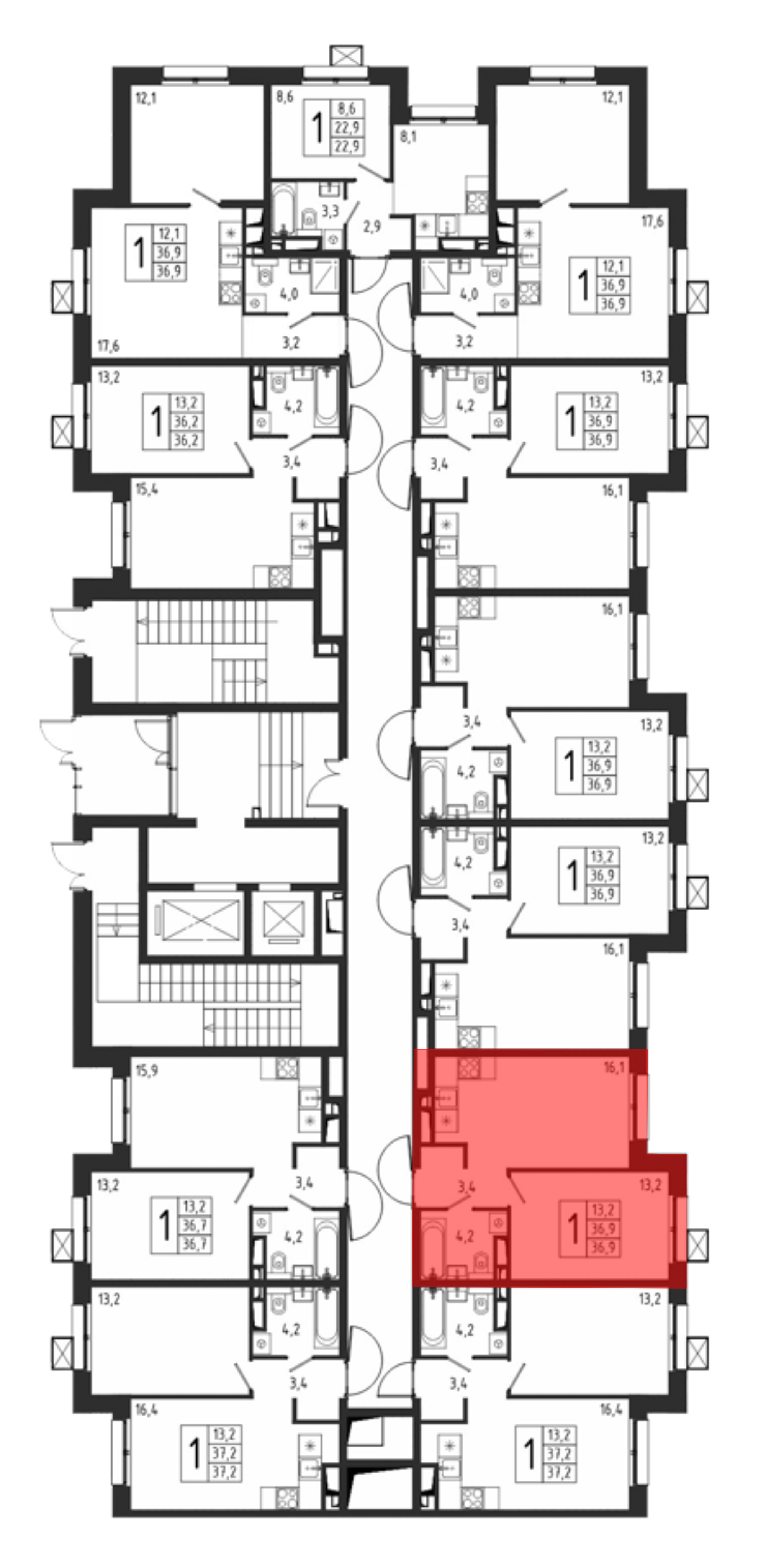 1-к.квартира, 36.9 м², 1 эт. в ЖК Берег Корпус 8