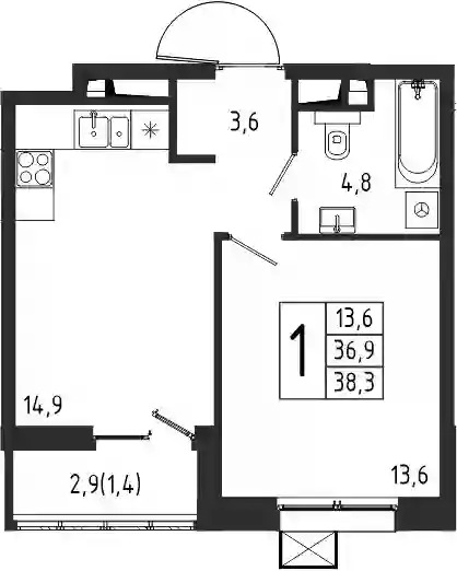 6 579 783 ₽1-к.квартира, 36.9 м², 4 эт.
