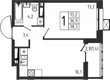 6 899 446 ₽2-к.квартира, 33.38 м², 16 эт.