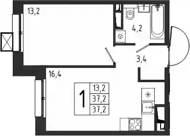 6 614 142 ₽1-к.квартира, 37.2 м², 4 эт.