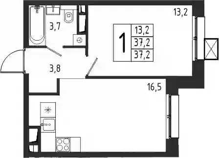 8 863 380 ₽1-к.квартира, 37.2 м², 1 эт.