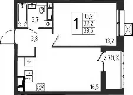 8 863 380 ₽1-к.квартира, 37.2 м², 1 эт.