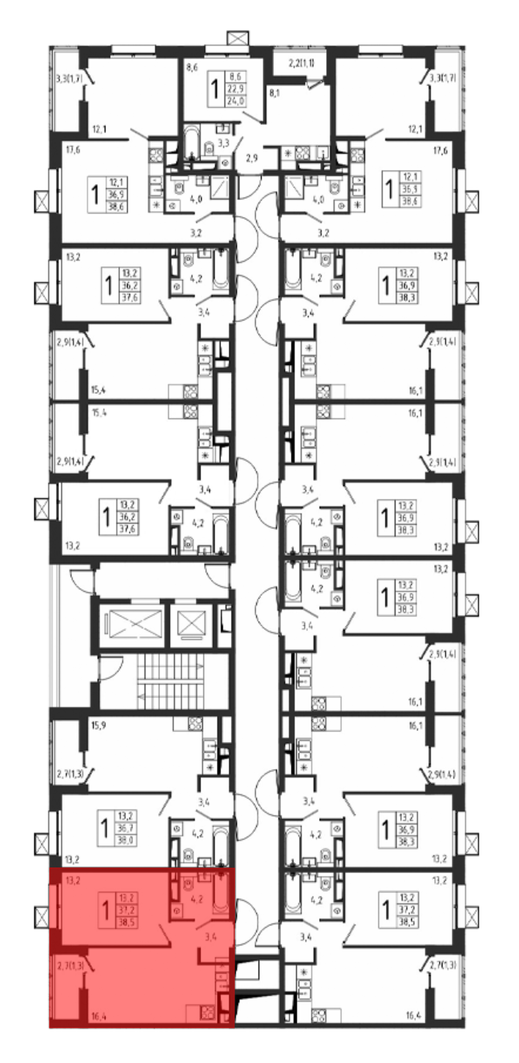 8 382 261 ₽1-к.квартира, 37.2 м², 1 эт.